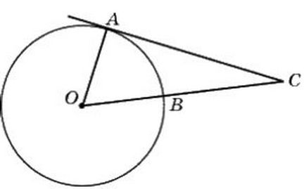 Угол ACO равен , где О — центр окружности. Его сторона CA — касается окружности. Найдите величину меньшей дуги AB окружности, заключенной внутри этого угла. Ответ дайте в градусах.