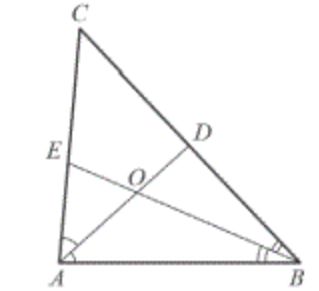 В треугольнике ABC угол C равен , биссектрисы AD и BE пересекаются в точке O. Найдите угол AOB. Ответ дайте в градусах.