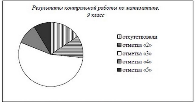 Завуч школы подвел итоги контрольной работы по математике в -х классах. Результаты представлены на круговой диаграмме.
