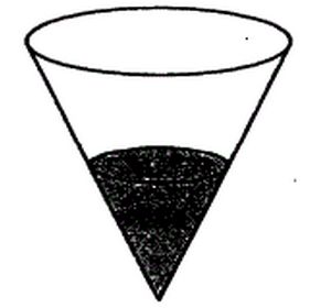 В сосуд, имеющий форму конуса, налили 25 мл жидкости до половины высоты сосуда (см. рис.). Сколько миллилитров жидкости нужно долить в сосуд, чтобы заполнить его доверху?