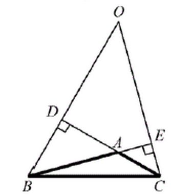 В треугольнике ABC угол A равен . Продолжения высот BD и CE, пересекаются в точке О. Найдите угол DOE. Ответ дайте в градусах.