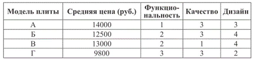 В таблице даны оценки каждого показателя для нескольких моделей газовых плит. Определите, какая модель имеет наивысший рейтинг. В ответ запишите значение этого рейтинга.