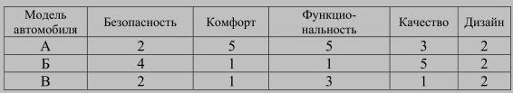 В таблице даны оценки каждого показателя для трёх моделей автомобилей. Определите наивысший рейтинг представленных в таблице моделей автомобилей.