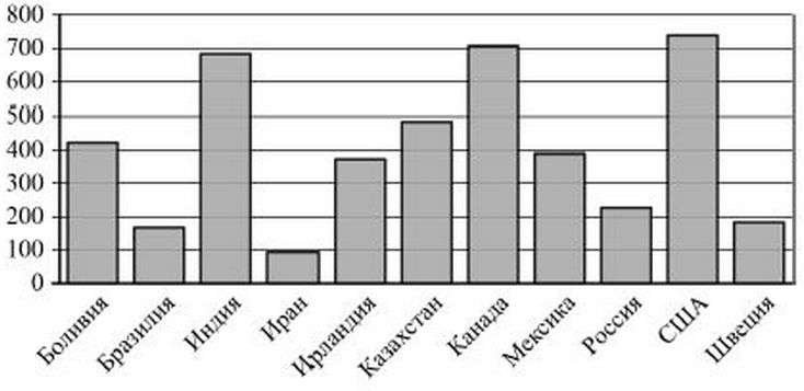 На диаграмме показано распределение выплавки цинка в 11 странах мира (в тысячах тонн) за 2009 год. Среди представленных стран первое место по выплавке цинка занимали США, одиннадцатое место - Иран. Какое место занимала Боливия?